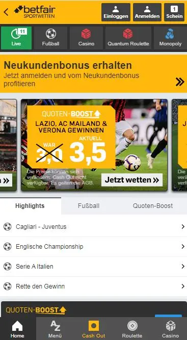 Damit sind die durchschnittlichen Quoten für Livewetten nicht berauschend, doch Betfair bietet mitunter sogar Bestquoten.