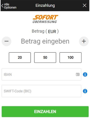 Einzahlung via Sofortüberweisung. 18+ | AGB Beachten