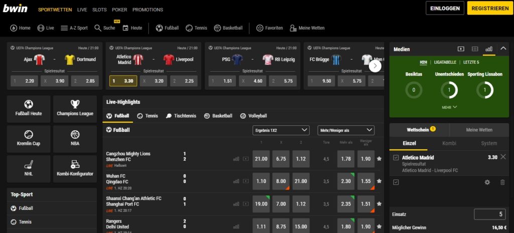 Mit seinen Wettquoten kann bwin an seine sehr gute Performance in den anderen Kategorien nicht ganz anschließen. Das liegt vor allem an den Quoten im Top-Fußball.