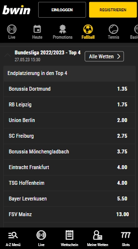 Bwin ist ein alter Hase auf dem Gebiet der Sportwetten. Erfahrung, Lizenzen in Deutschland und Malta sowie Partnerschaften (aktuell Borussia Dortmund und die NFL) garantieren Sicherheit.