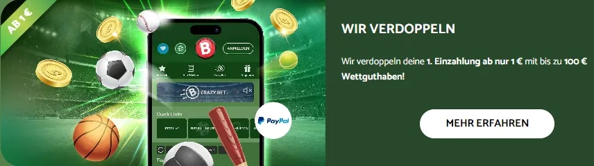 Ja, der Crazybuzzer Wettbonus ist ein 100 % Bonus von bis zu 100 €. Zusätzlich kriegen Neukunden noch eine 5€ Gratiswette ohne Einzahlung.