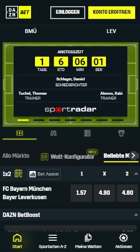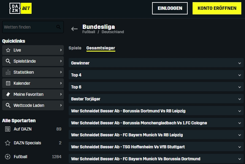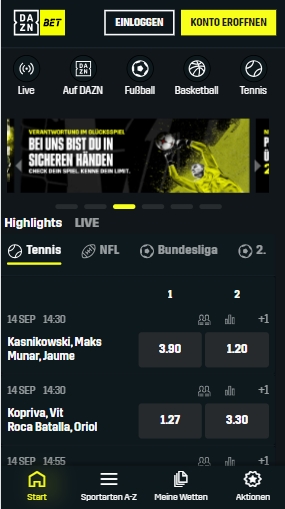 Bei den Live-Wetten sehen wir uns auch die vorhandenen Sportarten, Wettbewerbe und Wettmärkte an. Ob DAZN Bet dem Angebot auf DAZN in nichts nachsteht?