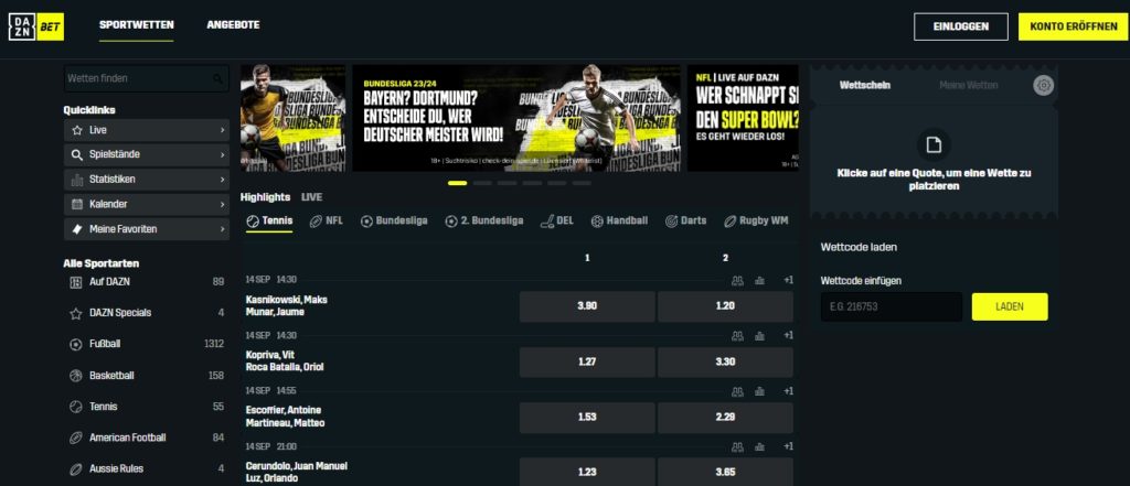 DAZN Bet Deutschland Wettprogramm – Top-Sportarten: