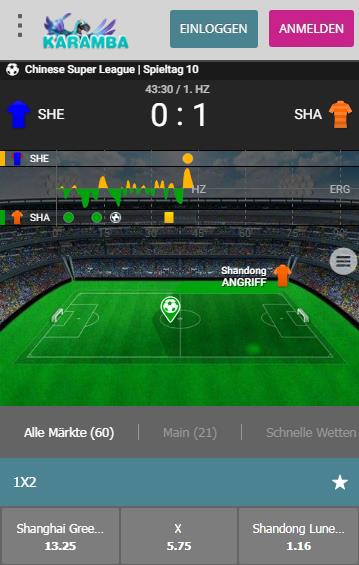 Mobile Live-Event-Ansicht von Karamba. Es gelten die AGB. 18+