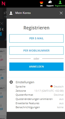 - „Registrieren“-Button auf der NEO.bet-Webseite anklicken