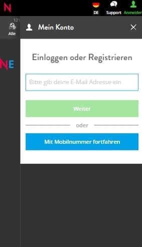 1. NEO.bet Login ins Wettkonto und Einzahlung vornehmen
