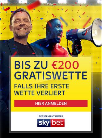 Neukunden starten ihr Abenteuer bei Sky Bet mit einem Bonus in Höhe von bis zu 200€ als Gratiswette. Registrieren Sie sich kostenlos bei Sky Bet und eröffnen Sie erstmals ein Wettkonto.