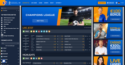 Grundsätzlich ist die Webseite wie ein Großteil der Konkurrenz in einem drei Spalten Muster strukturiert. Dabei inkludiert die erste Spalte sämtliche zum Wettabschluss verfügbare Kategorien sortiert nach Sportarten, Ländern und Wettbewerben. Darüber hinaus werden im oberen Bereich die Top-Wettbewerbe gelistet.