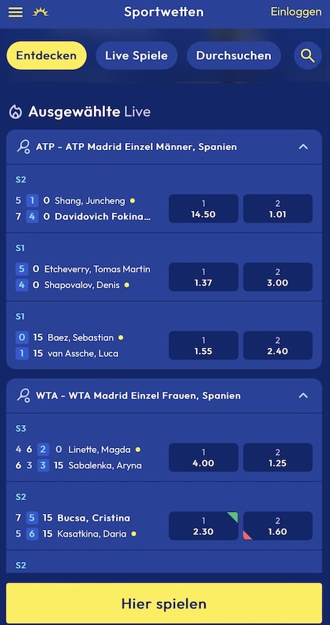 Mobil ist die Tippabgabe und Suche nach passenden Events sehr einfach gestrickt. Ebenso lassen sich Einzahlungen simpel beanspruchen und auch die weiteres Features entsprechen 1:1 der Desktop-Ansicht.