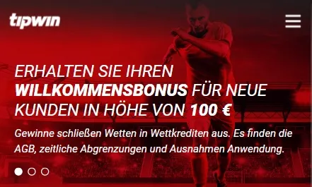 Der Neukundenbonus kann ohne weitere Probleme auch auf dem mobilen Tipwin Auftritt verwendet werden. Einen gesonderten Bonus, der nur auf den mobilen Bereich ausgerichtet ist, gibt es zum jetzigen Zeitpunkt bei Tipwin nicht.