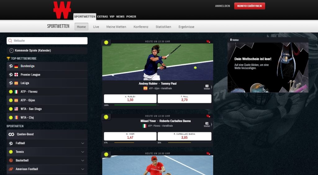 Im Rahmen unseres Wettangebot-Checks informieren wir uns über die vorhandenen Sportarten, Wettbewerbe und Wettmärkte.