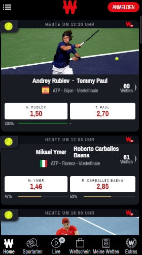 Im Vergleich zum Pre Match Angebot fällt das Livewetten Portfolio bei Winamax eher kleiner aus. Die Auswahl beschränkt sich vorwiegend aufs Kerngeschäft. Somit sind z. B. vorwiegend Ballsportarten wie Fußball oder Tennis anzutreffen.