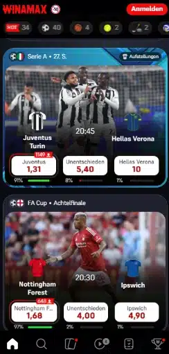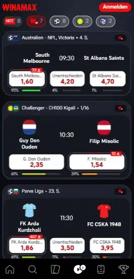 WINAMAX kann in Deutschland mit ca. 20 Sportarten aufwarten. Damit liegt der Bookie im Schnitt der von uns getesteten Wettanbietern. Top ist Bet365 mit 25.