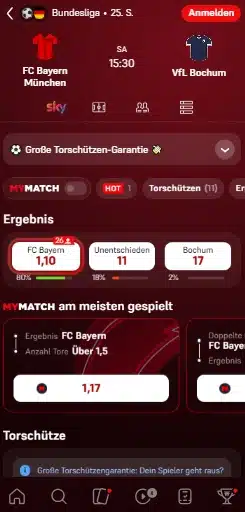 Sobald die gesamte Wettübersicht zu einem ausgewählten Fußball Match aufgerufen wurde, kann anhand des „MyMatch“ – Banners zum „MyMatch“ – Tool navigiert werden.